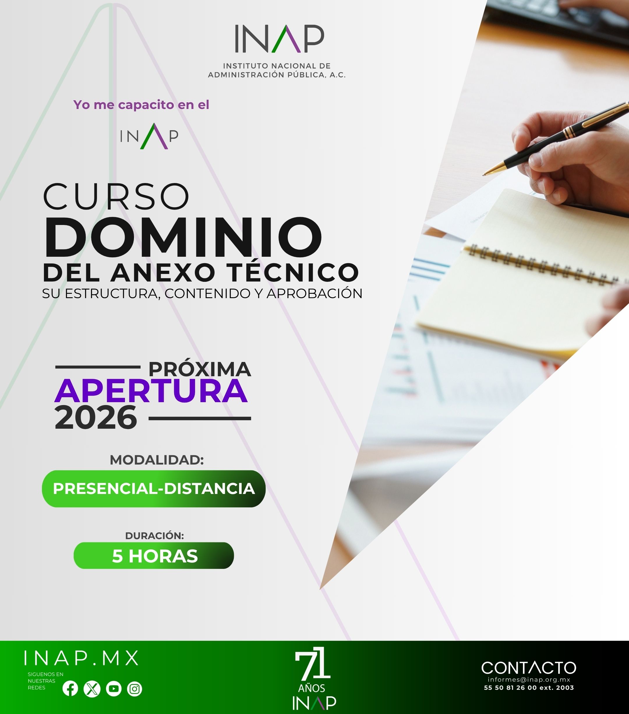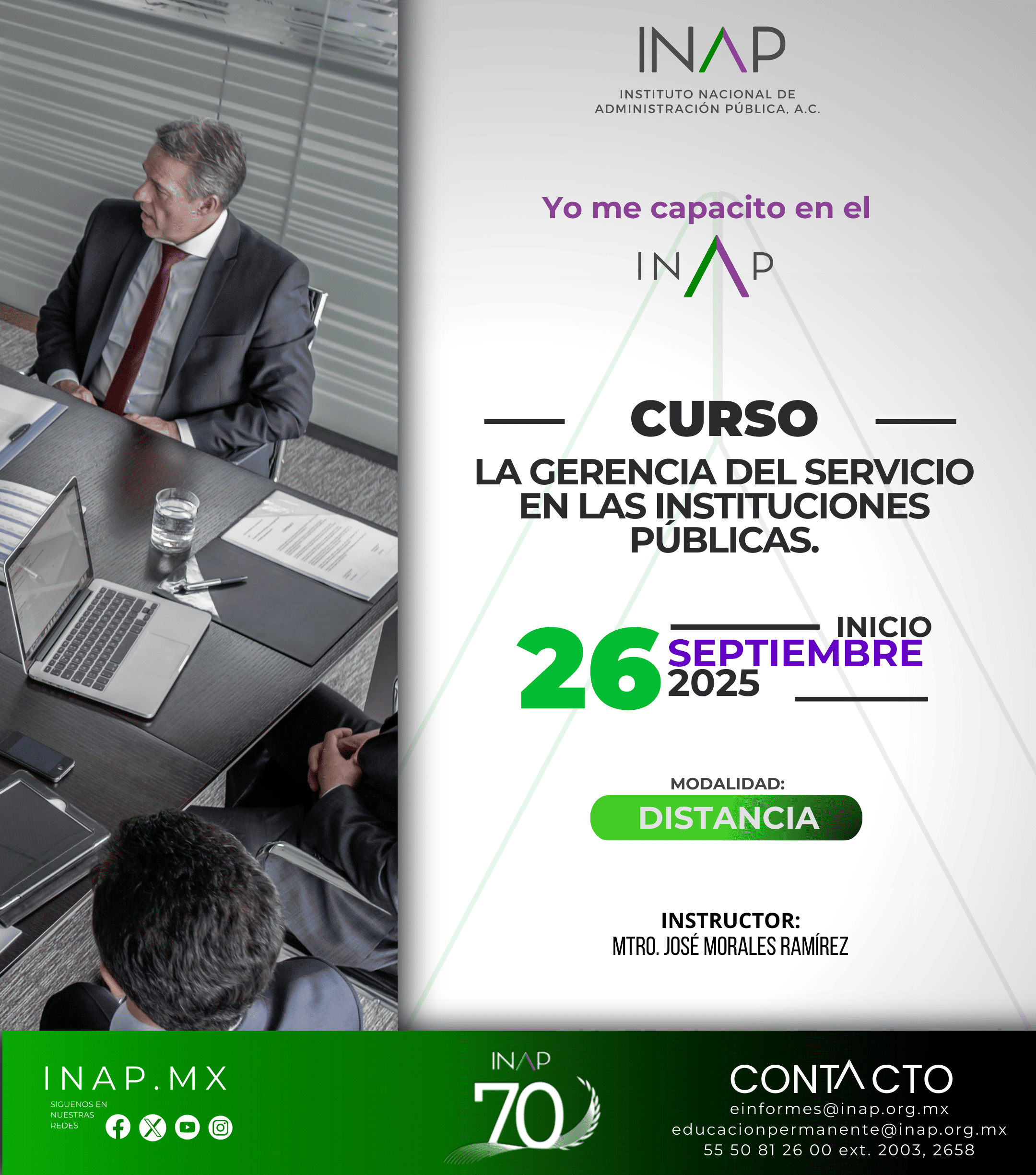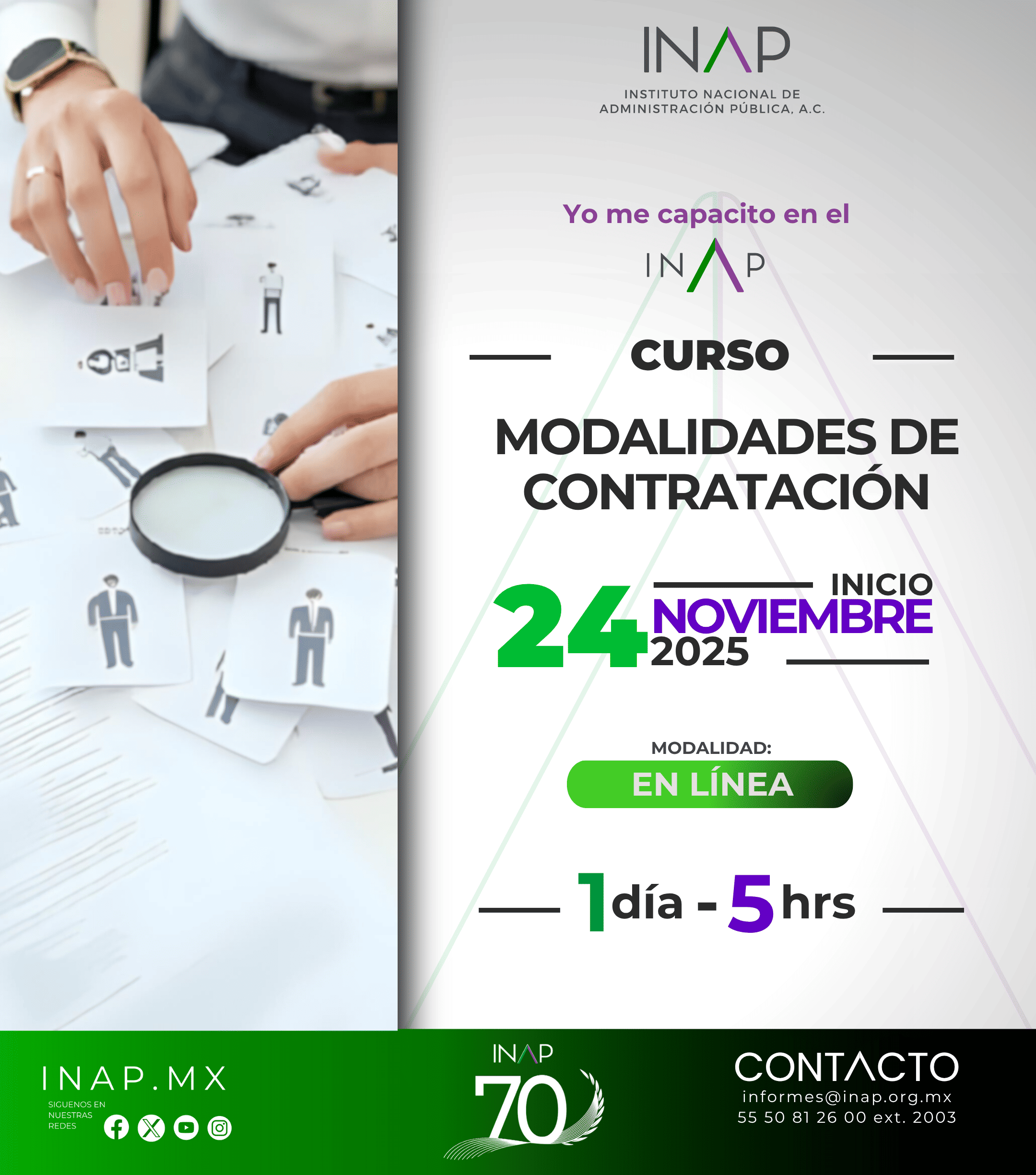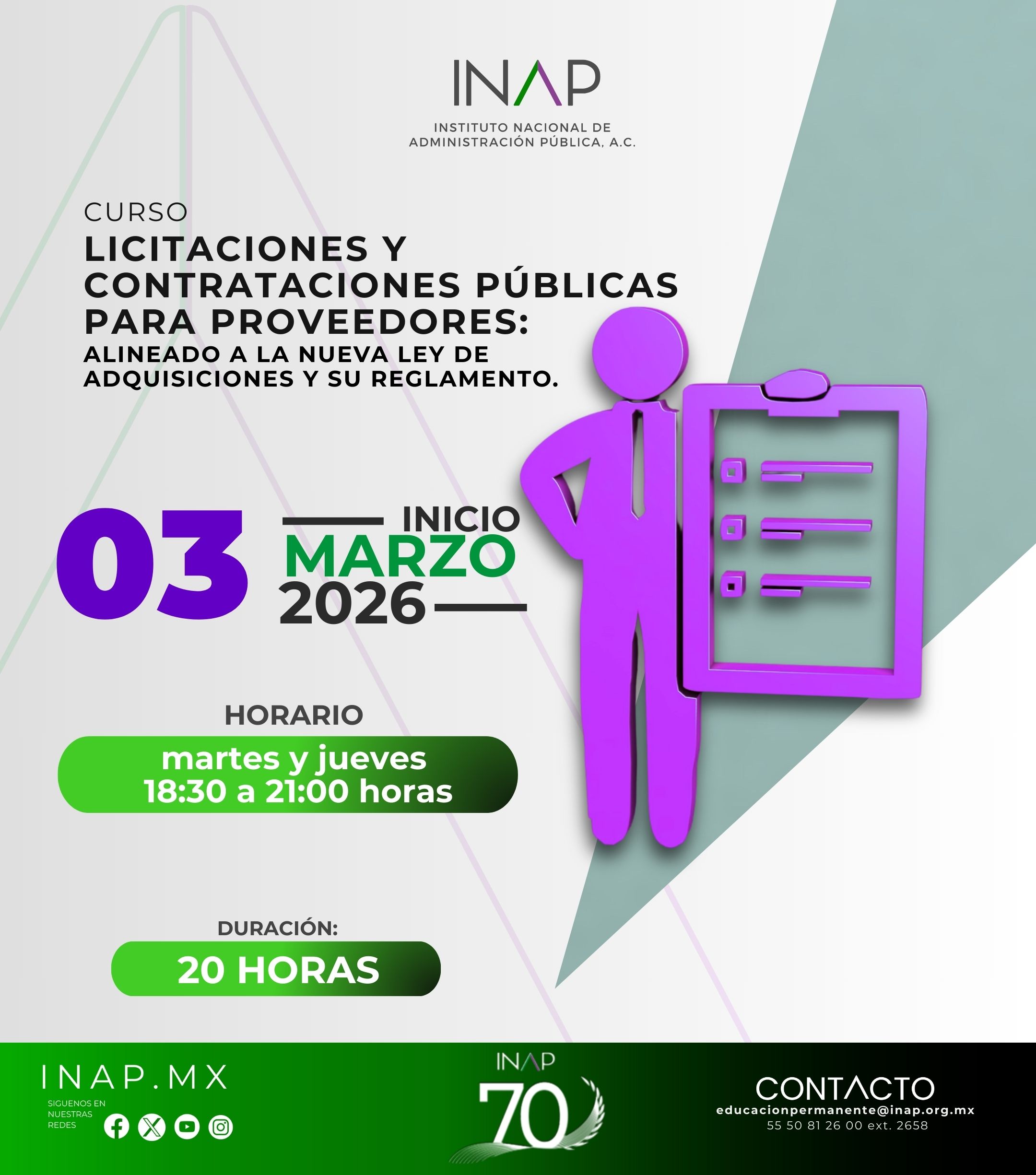 Consciente de ello, el Instituto Nacional de Administración Pública presenta una amplia gama de Programas de Corta Duración, entre los que se encuentran Cursos, Talleres y Seminarios dirigidos a servidores públicos de los tres niveles de gobierno, personal de la iniciativa privada, así como investigadores, docentes e interesados en adquirir, actualizar y ampliar los conocimientos en los temas relacionados con la Administración Pública, tales como habilidades directivas, recursos materiales, recursos financieros, entre otros.